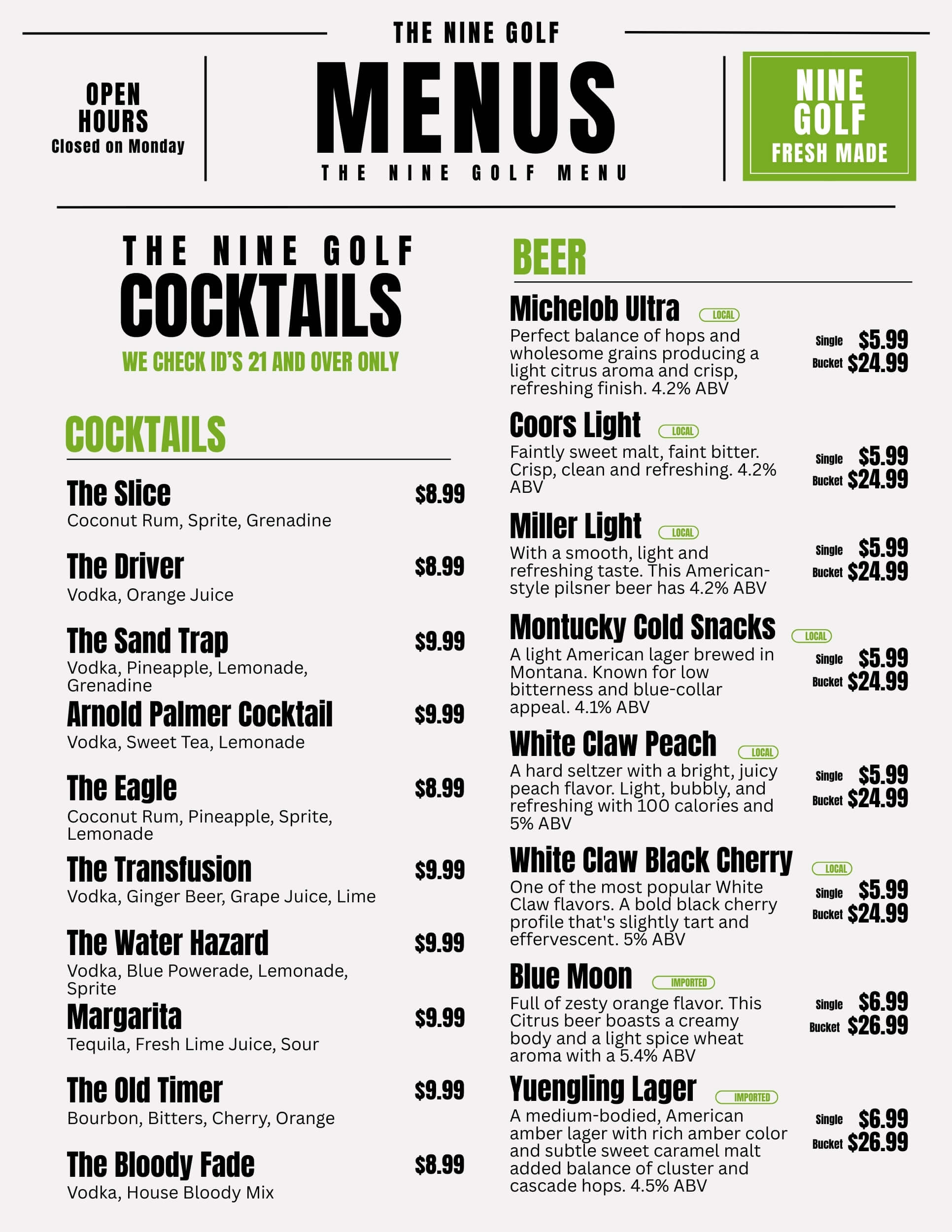 Indoor Golf & Food & Drink